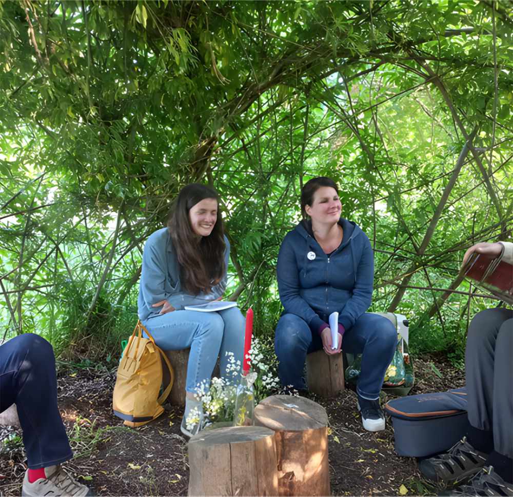 Een plek waar mensen samenleven, zorgen voor elkaar en oefenen in duurzaam leven — een gemeenschap waarin inspiratie, creativiteit en verbondenheid centraal staan.